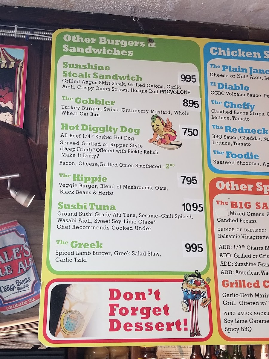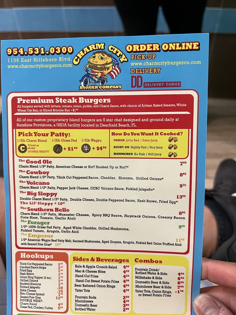INCREDIBLE! THE LIL’ SLOPPY Single 1/3lb Charm Blend Burger Peppered Bacon American Cheese Hashbrown Fried Egg Lettuce, Tomato, Raw Onion, Pickle, Charm Sauce! *Fan Favorite
